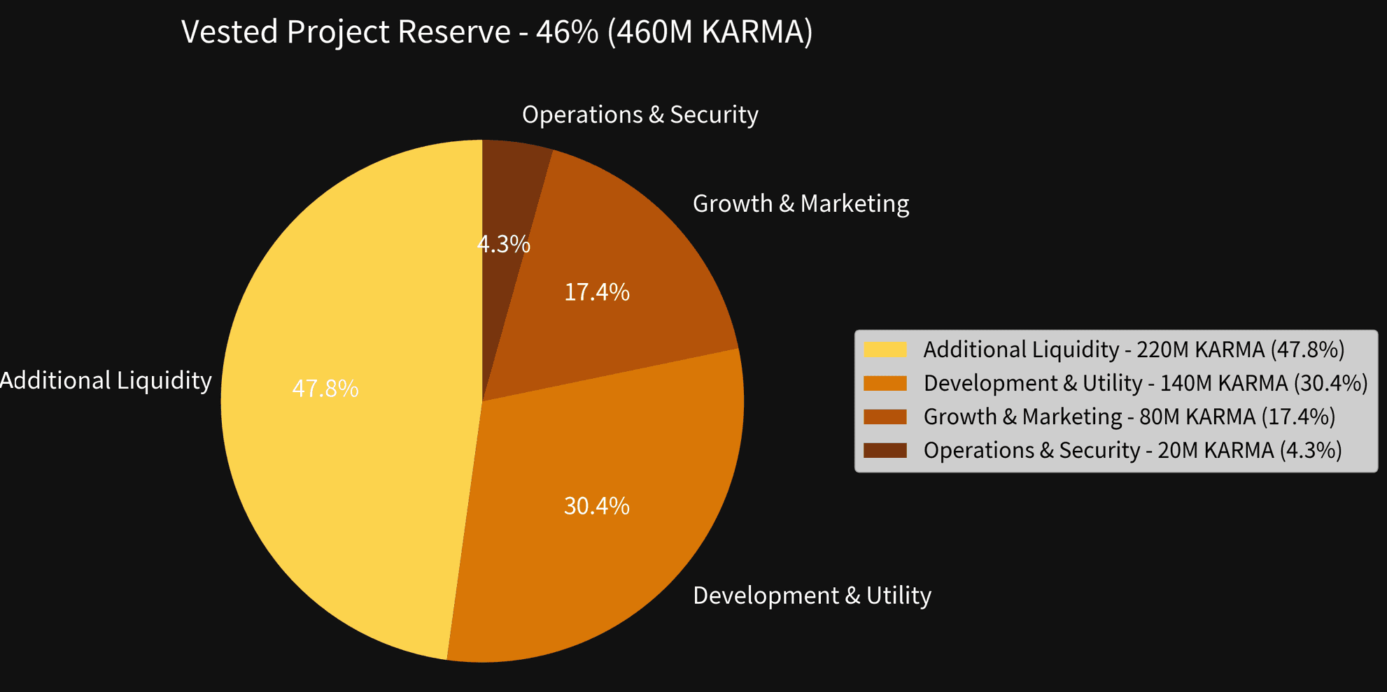 The 46% Vested Project Reserve (460M KARMA) will be released gradually over 24 months and used strategically to build long-term value. No sudden dumps. All decisions will prioritize sustainability and community alignment.